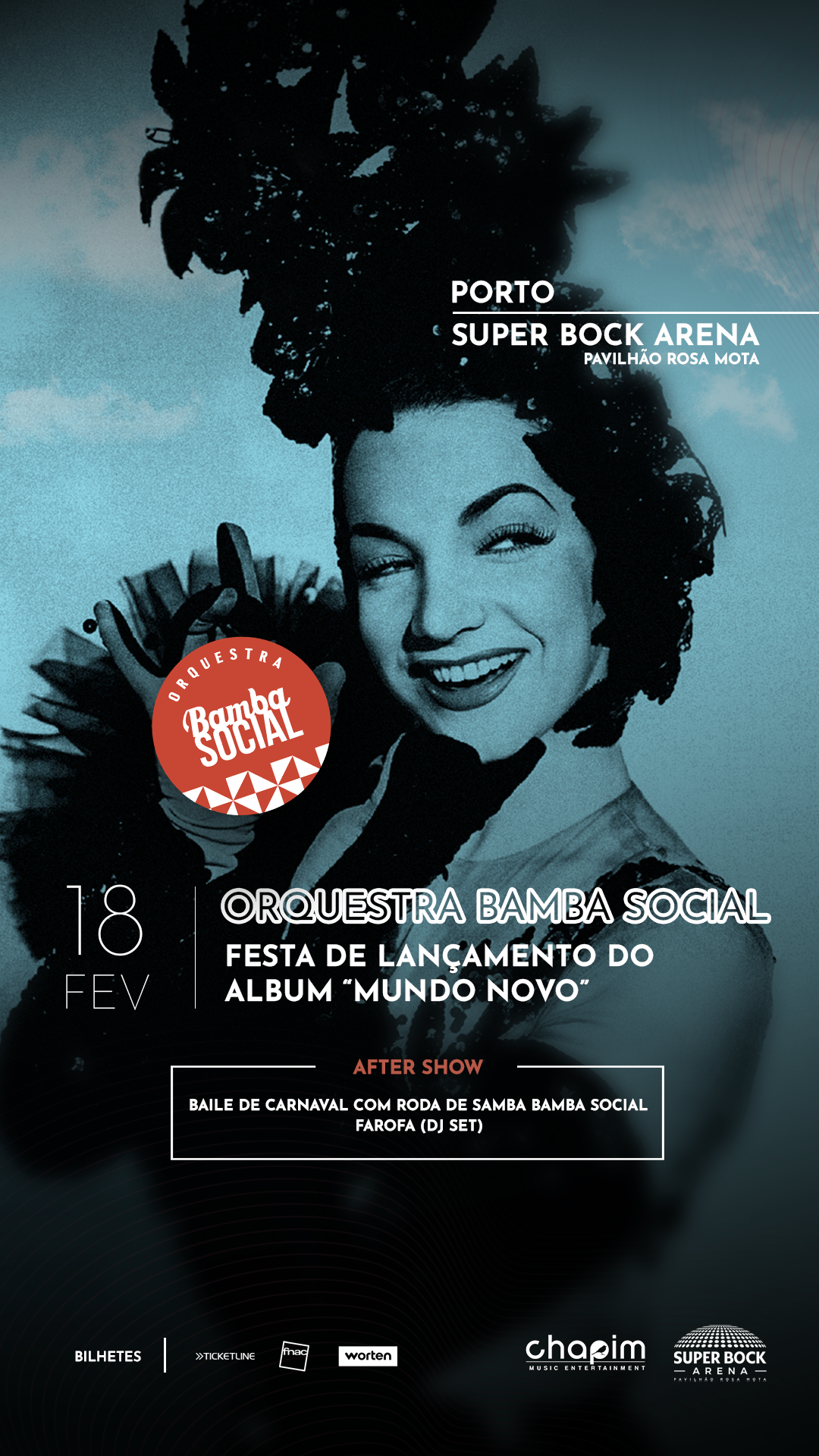 Na celebração de 10 anos de banda, a Orquestra Bamba Social apresenta o seu novo álbum “Mundo Novo” juntamente com uma festa de Carnaval, que inclui uma dupla atuação em formato de orquestra no palco e em roda de samba, numa disposição de 360° com o público em seu redor.A celebração carnavalesca continuará depois com Farofa (Dj set).